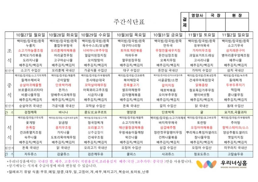 Á¦¸ñ :2025³â 11¿ù ù°ÁÖ ½Ä´ÜÇ¥ (10.27~11.02)