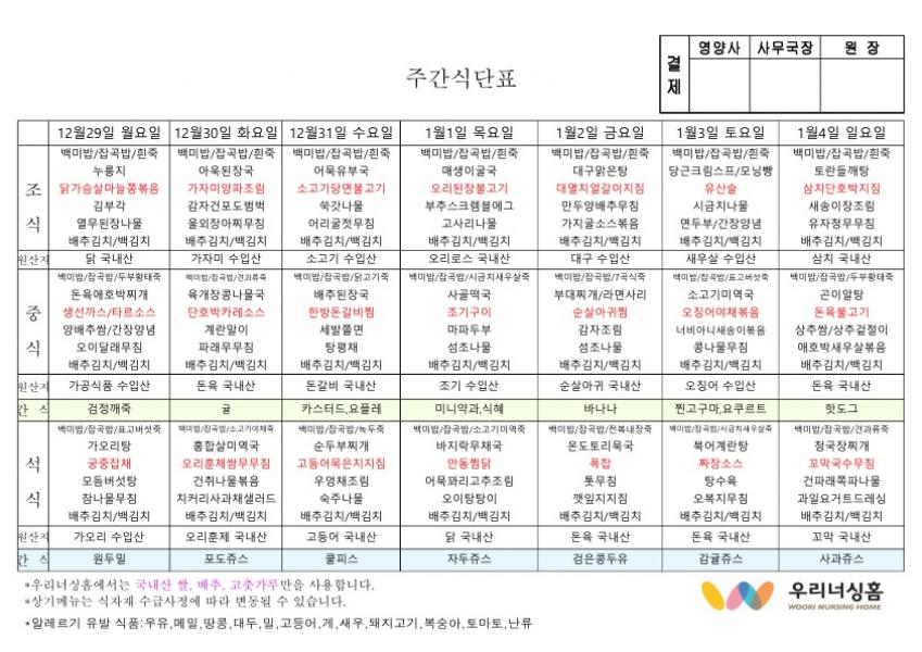 Á¦¸ñ :2026³â 1¿ù ù°ÁÖ ½Ä´ÜÇ¥(12,29~1,04)