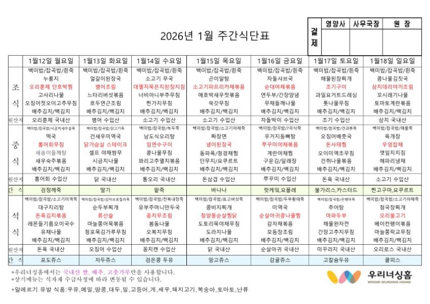 Á¦¸ñ :2026³â 1¿ù ¼¼Â°ÁÖ ½Ä´ÜÇ¥(1,12~1,18)