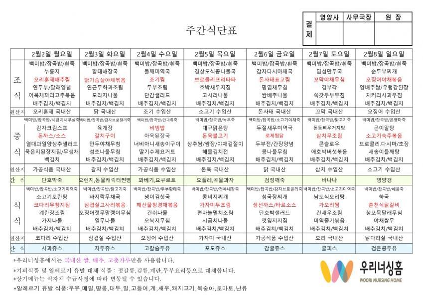 Á¦¸ñ :2026³â 2¿ù ù°ÁÖ ½Ä´ÜÇ¥(2,2~2,8)