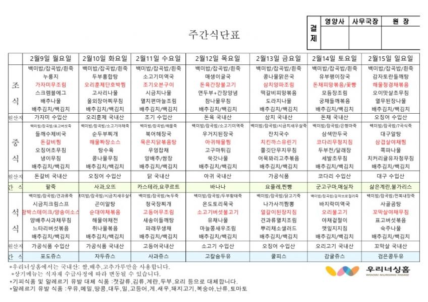 ÀÌÀü±Û 2026³â 2¿ù ù°ÁÖ ½Ä´ÜÇ¥(2,2~2,8) 2026-01-28