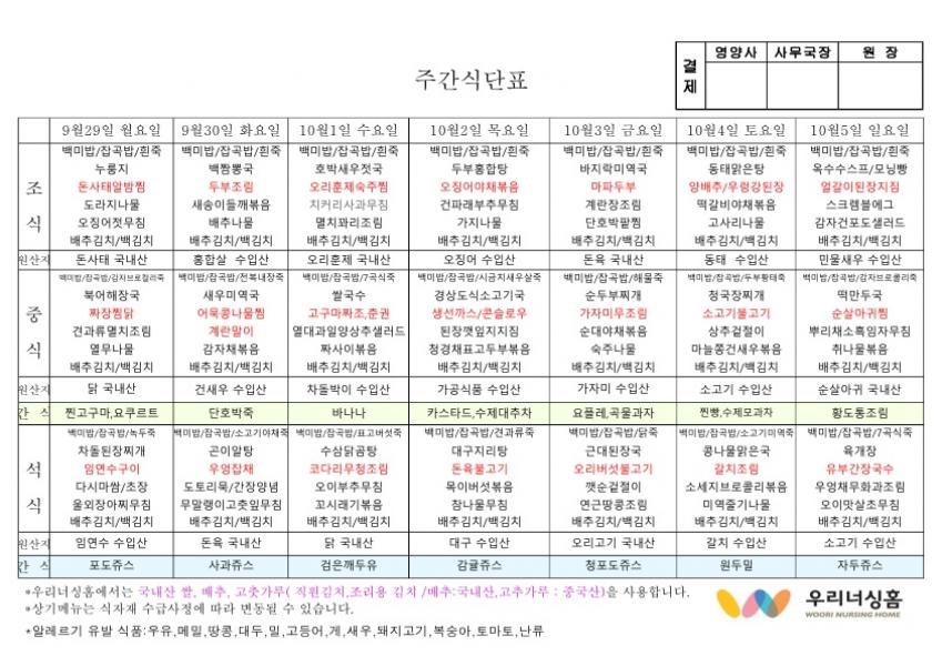 Á¦¸ñ :2025³â 10¿ù ù°ÁÖ ½Ä´ÜÇ¥ (9.29~10.05)
