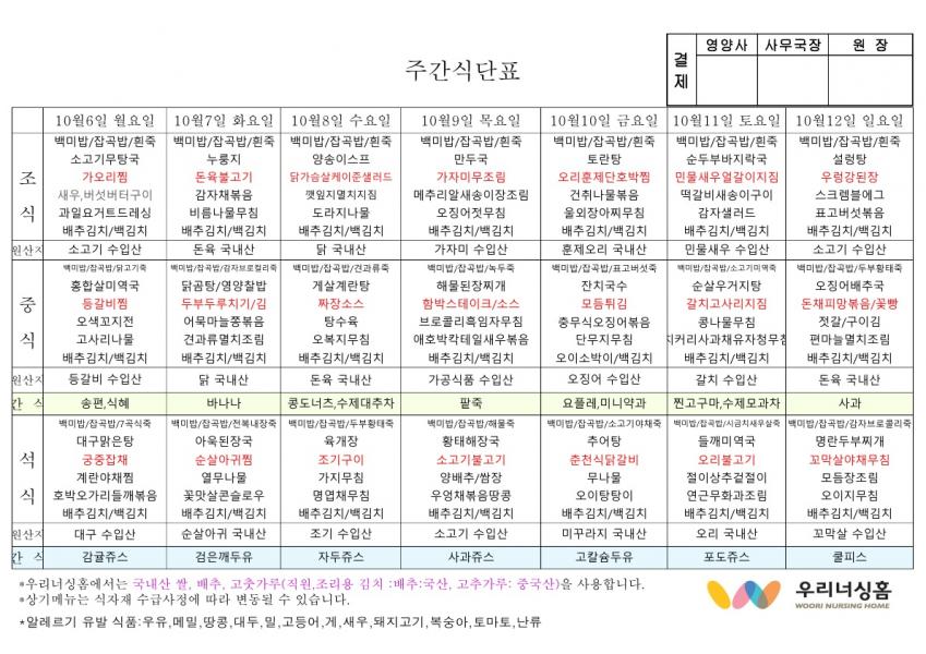 ÀÌÀü±Û 2025³â 10¿ù ù°ÁÖ ½Ä´ÜÇ¥ (9.29~10.05) 2025-09-25