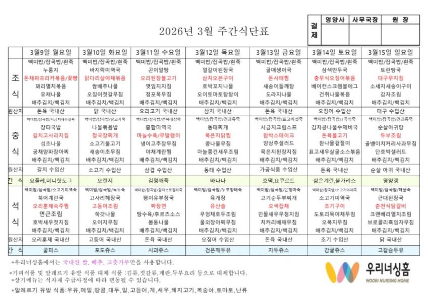 Á¦¸ñ :2026³â 3¿ù µÑ°ÁÖ ½Ä´ÜÇ¥(3,9~3,15)