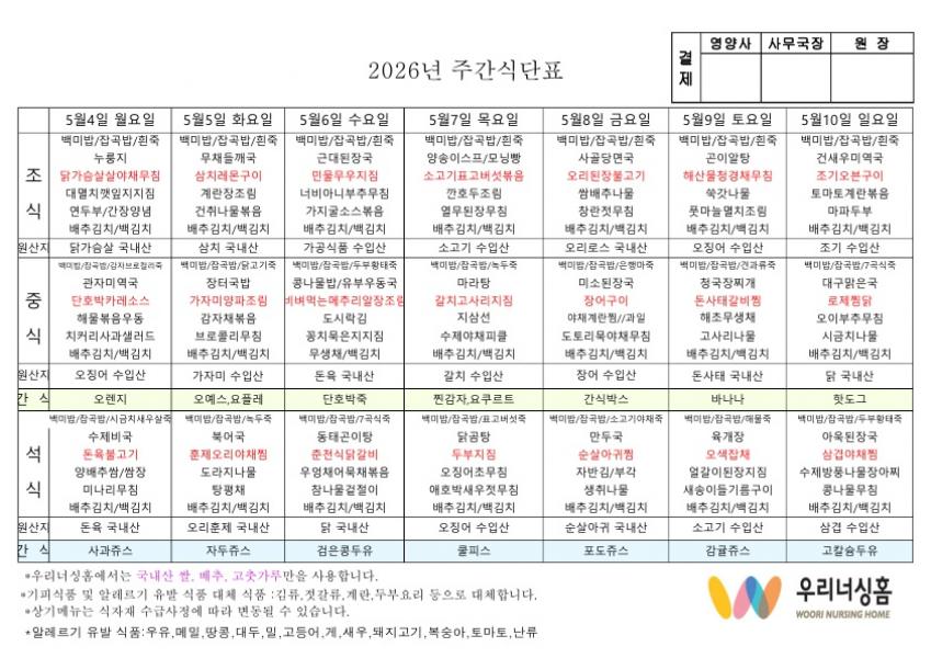 ÀÌÀü±Û 2026³â 5¿ù ù°ÁÖ ½Ä´ÜÇ¥(4,27~5.03) 2026-04-21