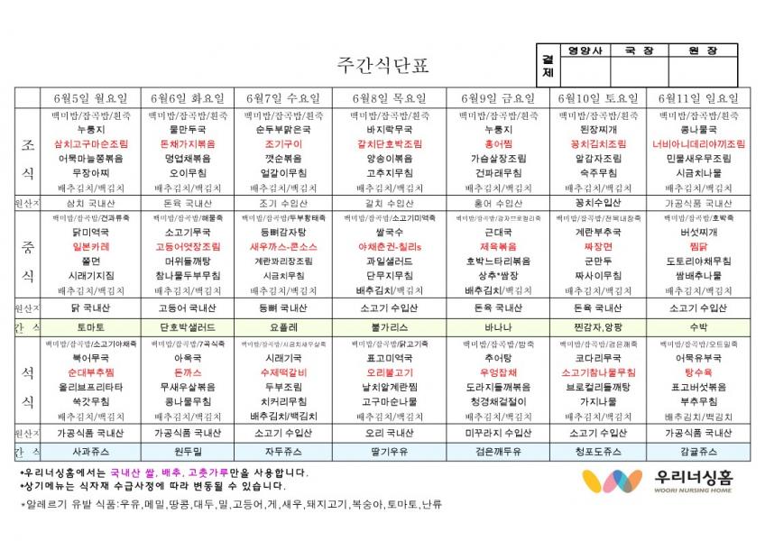 Á¦¸ñ :2023³â 6¿ù 1ÁÖÂ÷ ½Ä´ÜÇ¥ (6.5~6.11)